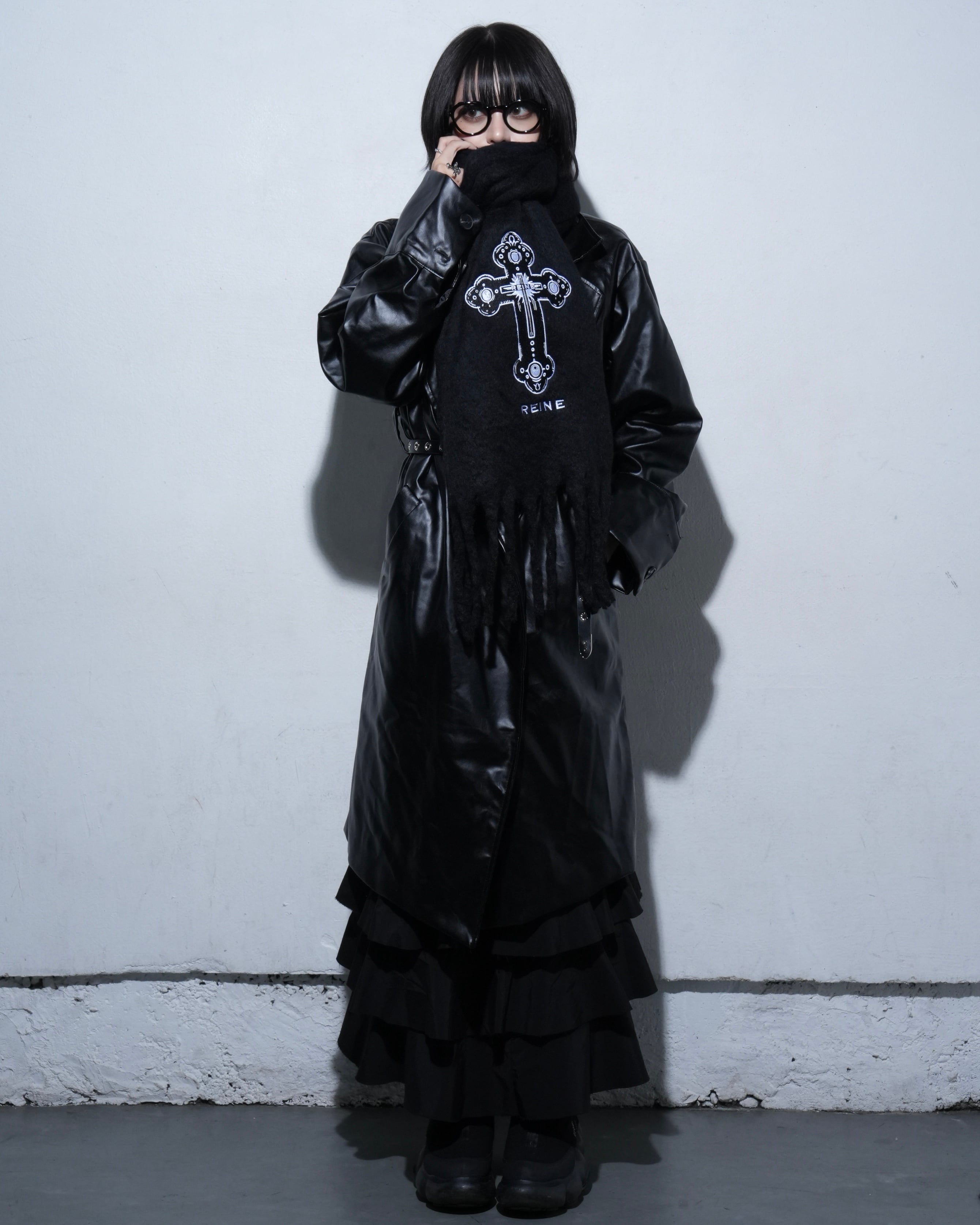 存在感のあるクロスデザインが目を引くブラックマフラー。 シンプルなコーディネートにプラスするだけで、 一気にモードでエッジの効いた印象に仕上がります。 程よい厚みと柔らかな風合いで、防寒性とデザイン性を両立。 ユニセックス仕様のため、性別を問わず着用可能です。 ・モード/ゴシック/ストリートに ・秋冬の主役アイテムとして ・ギフトにもおすすめ