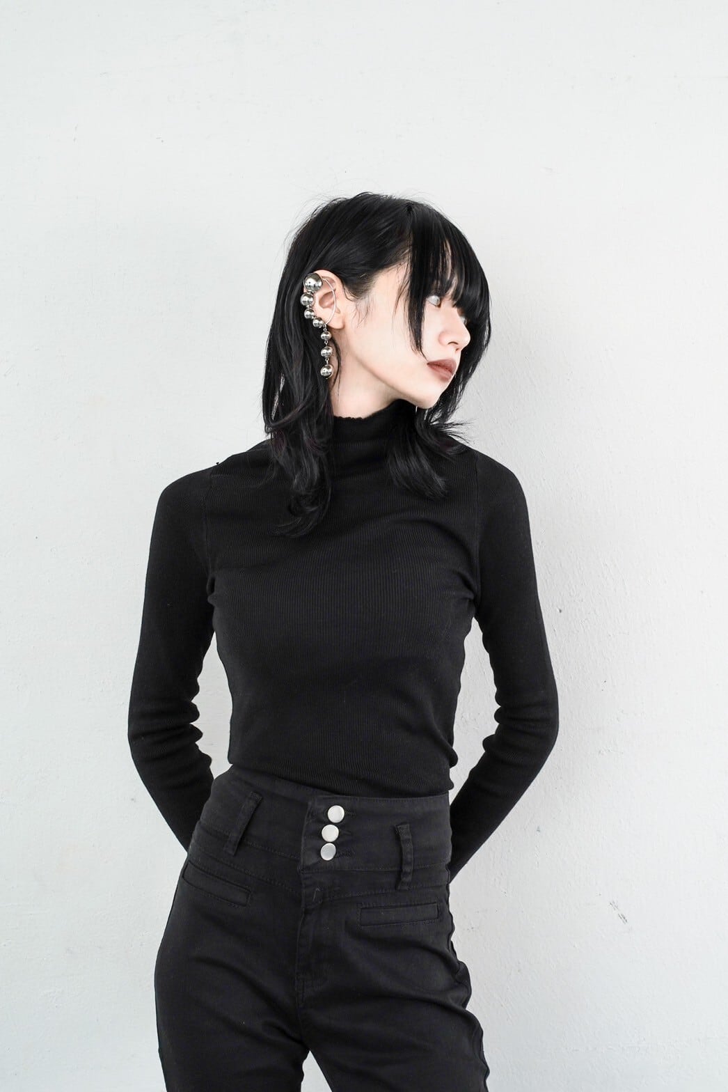シルエットがすっきりとした着回し抜群のタートルネック型トップス。 春仕様のしっかりした生地になります。 SIZE 着丈 57 肩幅 28 胸幅 34 袖丈 56